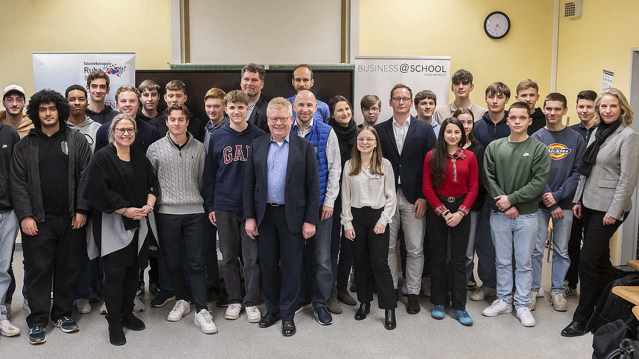 Rund 26 Schüler:innen vom Maria-Wächtler-Gymnasium in Essen beteiligten sich im Rahmen des Projektes Dialog mit der Jugend an einem Videowettbewerb. So analysierten die Schüler:innen in knapp drei Wochen Unternehmen aus dem Ruhrgebiet anhand von vier Fragen. Ihre Ergebnisse präsentierten sie in Form von Kurzvideos vor einer Expertenjury, bestehend aus Vertreter:innen der analysierten Unternehmen und Dr. Maurer von BCG.