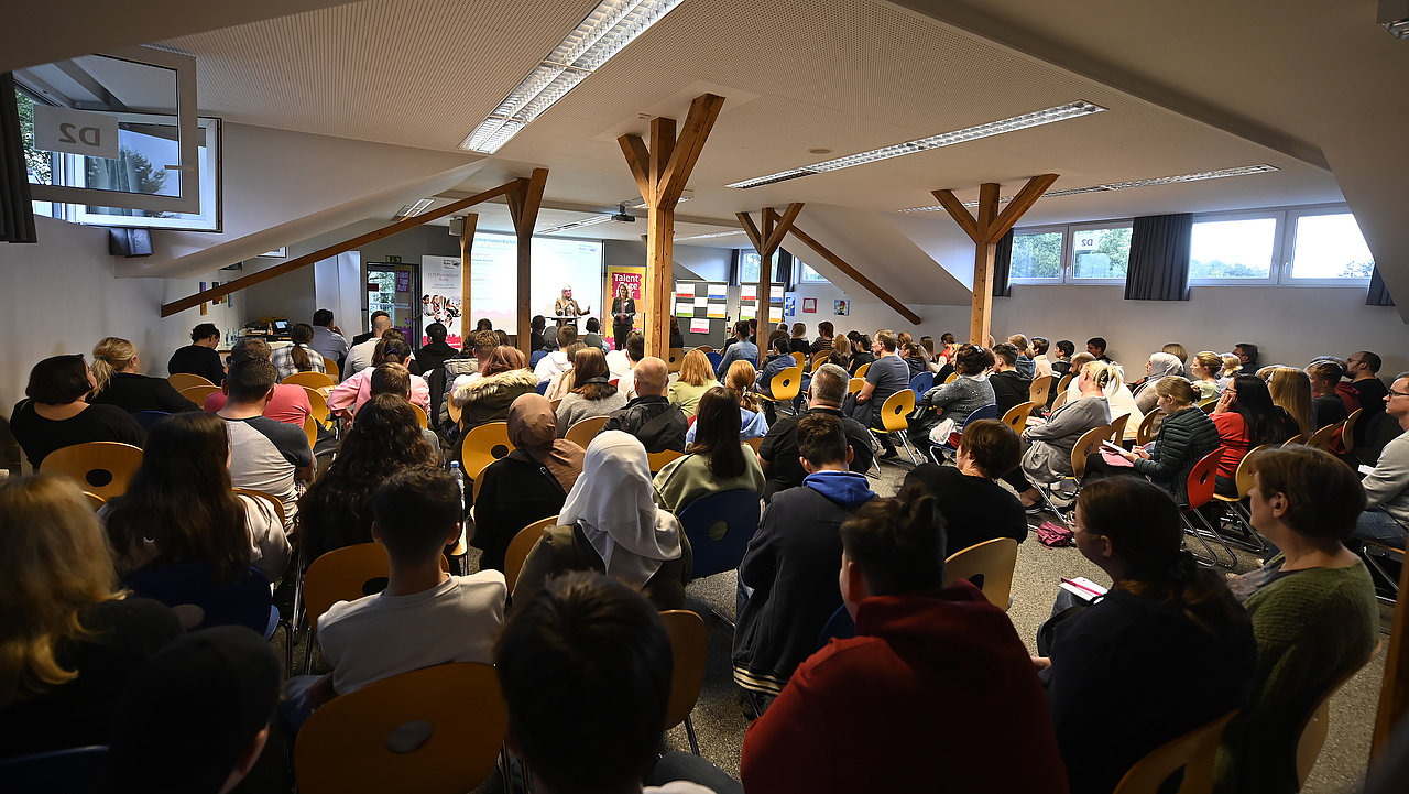 Knapp 120 Teilnehmer:innen erfuhren in dem Angebot zu den TalentTagen Ruhr von Expert:innen aus der Berufspraxis, welche Möglichkeiten Institutionen und Unternehmen nach dem Schulabschluss bereit halten – darunter waren Referent:innen von HELLA GmbH & Co. KGaA, Kreis Recklinghausen, Klinikum Vest GmbH, Evonik Operations GmbH, GHH Fahrzeuge, TalentKolleg Ruhr und der Polizei NRW.