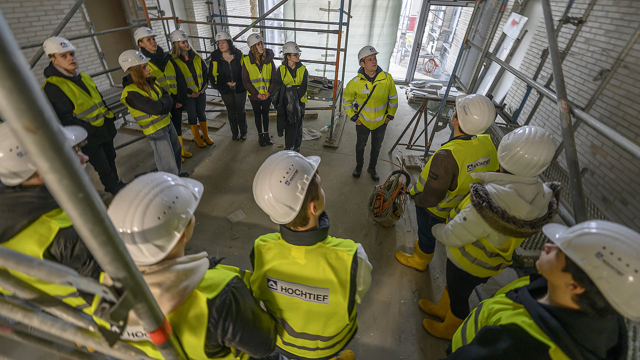 53 Oberstufenschüler:innen von der Theodor-Körner-Schule in Bochum und dem Gymnasium Langenberg in Velbert besuchten im Dialog mit der Jugend die MK04-Baustelle in Duisburg, um einen Einblick in die Welt des Bauens zu erhalten. Mitarbeiter:innen von HOCHTIEF begrüßten die Schüler:innen herzlich und führten sie durch den Rohbau, wobei sie die verschiedenen Phasen und Herausforderungen des Bauprojekts erläuterten.
